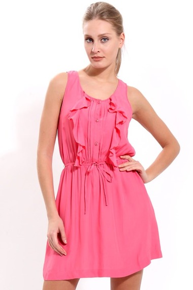 Модный летний сарафан с рюшами и тонким поясом. Пошит из вискозы высокого качества. Нежный розовый цвет создает настроение, а удобный фасон с расклешенной юбкой подарит комфорт в жаркую погоду!