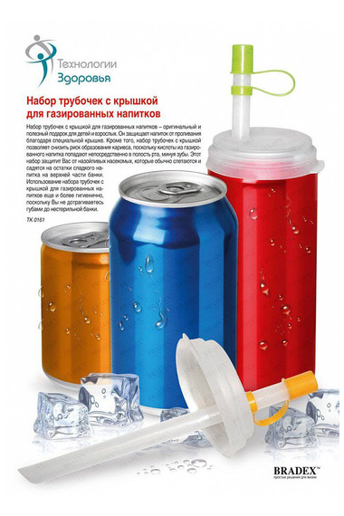 Набор трубочек с крышкой для газированных напитков – оригинальный и полезный подарок для детей и взрослых. Он защищает напиток от проливания благодаря специальной крышке. Кроме того, набор трубочек с крышкой позволяет снизить риск образования кариеса, поскольку кислоты из газированного напитка попадают непосредственно в полость рта, минуя зубы. Этот набор защитит Вас от назойливых насекомых, которые обычно слетаются и садятся на остатки сладкого напитка на верхней части банки. Использование набора трубочек с крышкой для газированных напитков еще и более гигиенично, поскольку Вы не дотрагиваетесь губами до нестерильной банки.